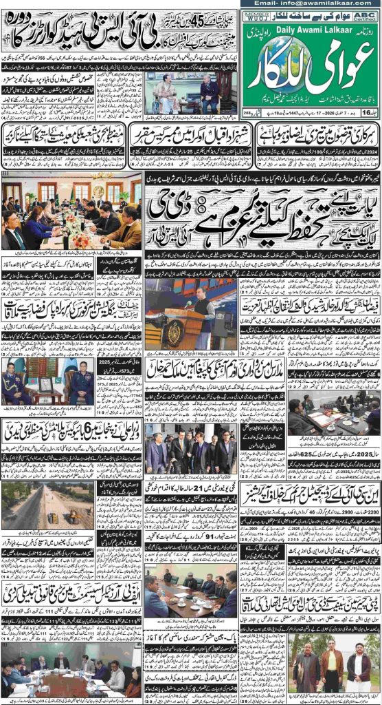 پی ڈی ایف ڈاؤن لوڈ کرنے کے لیے نیچے دیے گئے ڈاؤن لوڈ کے بٹن پر کلک کیجئے Awami Lalkaar 07-01-2026Download