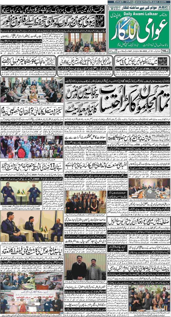 پی ڈی ایف ڈاؤن لوڈ کرنے کے لیے نیچے دیے گئے ڈاؤن لوڈ کے بٹن پر کلک کیجئے Awami Lalkaar 21-11-2025Download