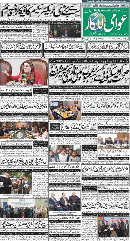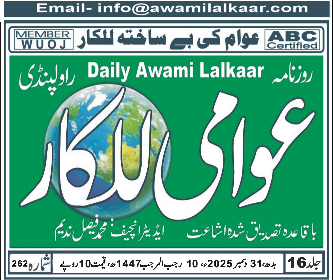 پی ڈی ایف ڈاؤن لوڈ کرنے کے لیے نیچے دیے گئے ڈاؤن لوڈ کے بٹن پر کلک کیجئے Awami Lalkaar 31-12-2025Download