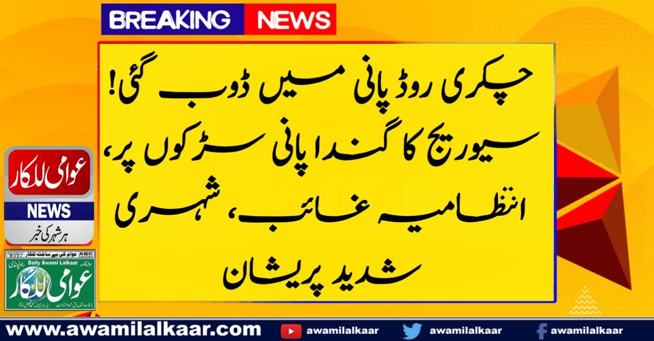 چکری روڈ پانی میں ڈوب گئی! سیوریج کا گندا پانی سڑکوں پر، انتظامیہ غائب، شہری شدید پریشان
