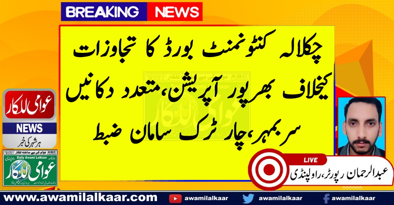 چکلالہ کنٹونمنٹ بورڈ کا تجاوزات کیخلاف بھرپور آپریشن،متعدد دکانیں سربمہر،چار ٹرک سامان ضبط