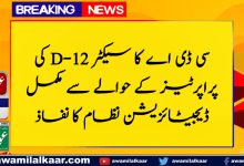 سی ڈی اے کا سیکٹر D-12 کی پراپرٹیز کے حوالے سے مکمل ڈیجیٹائزیشن نظام کا نفاذ
