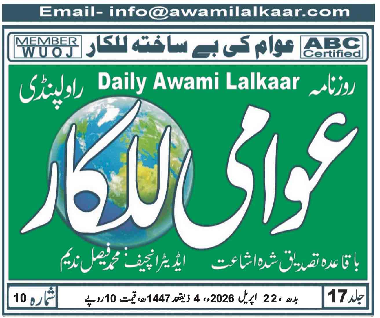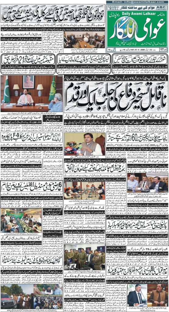 Home/اخبار/عوامی للکار راولپنڈی بروز بدھ 22 اپریل 2026 اخبار عوامی للکار راولپنڈی بروز بدھ 22 اپریل 2026 awamilalkaar Send an email 2 گھنٹے ago0 0 Less than a minute Facebook Twitter LinkedIn Tumblr Pinterest Reddit VKontakte Odnoklassniki Pocket Tagsarticles Awami Lalkaar crack down epaper Gas news Newspaper Thief awamilalkaar Send an email 2 گھنٹے ago0 0 Less than a minute Facebook Twitter LinkedIn Tumblr Pinterest Reddit VKontakte Odnoklassniki Pocket Share Facebook Twitter LinkedIn Tumblr Pinterest Reddit VKontakte Odnoklassniki Pocket WhatsApp Share via Email Print