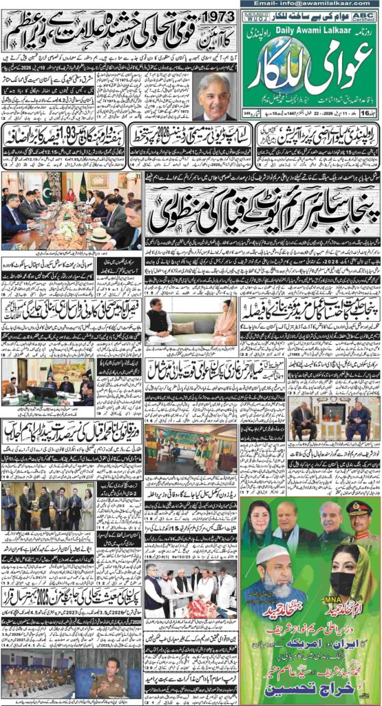پی ڈی ایف ڈاؤن لوڈ کرنے کے لیے نیچے دیے گئے ڈاؤن لوڈ کے بٹن پر کلک کیجئے Awami Lalkaar 11-04-2026ڈاؤن لوڈ