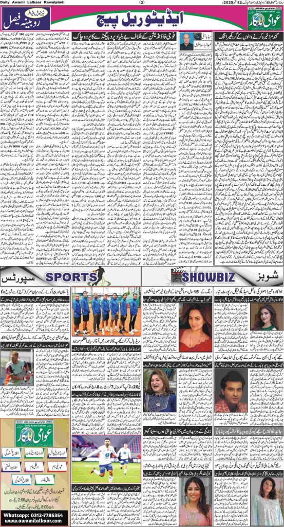 پی ڈی ایف ڈاؤن لوڈ کرنے کے لیے نیچے دیے گئے ڈاؤن لوڈ کے بٹن پر کلک کیجئے Awami Lalkaar 12-09-2025Download