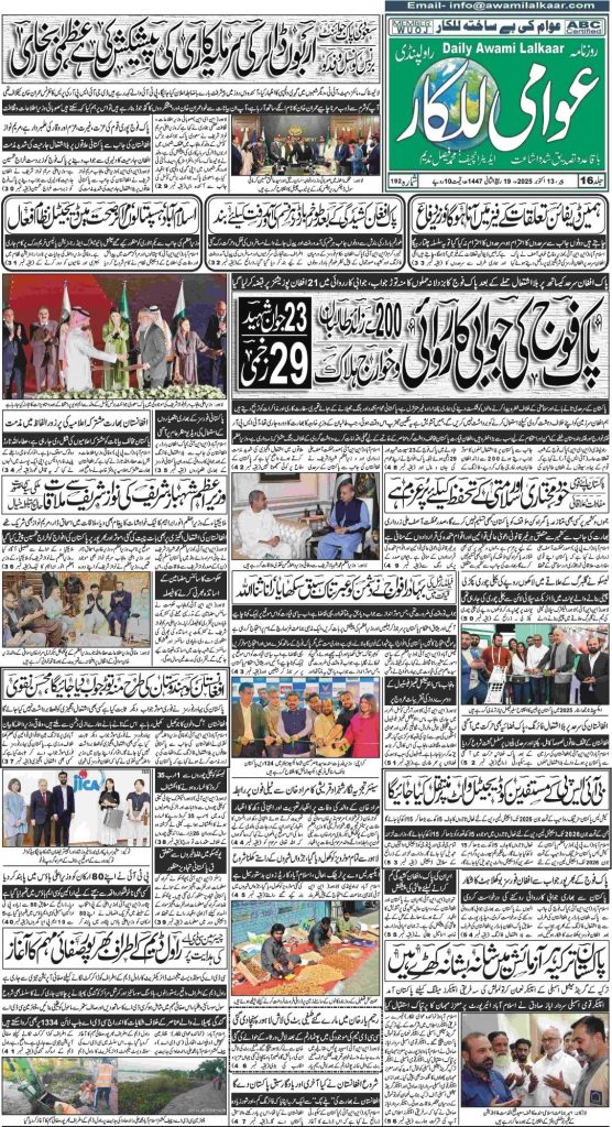 پی ڈی ایف ڈاؤن لوڈ کرنے کے لیے نیچے اگر ڈاؤن لوڈ کے بٹن پر کلک کیجئے Awami Lalkaar 13-10-2025Download