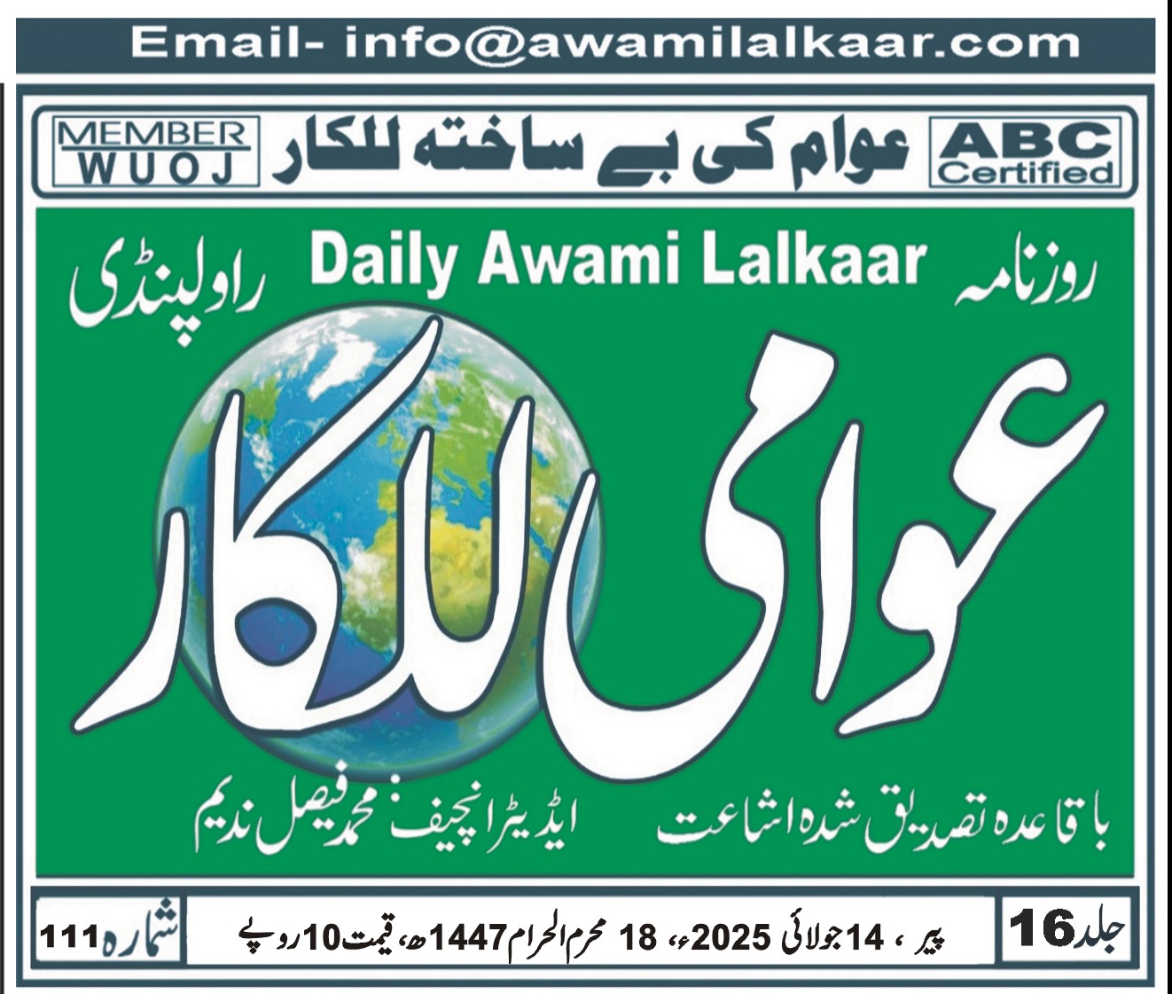 عوامی للکار راولپنڈی بروز پیر 14 جولائی 2025