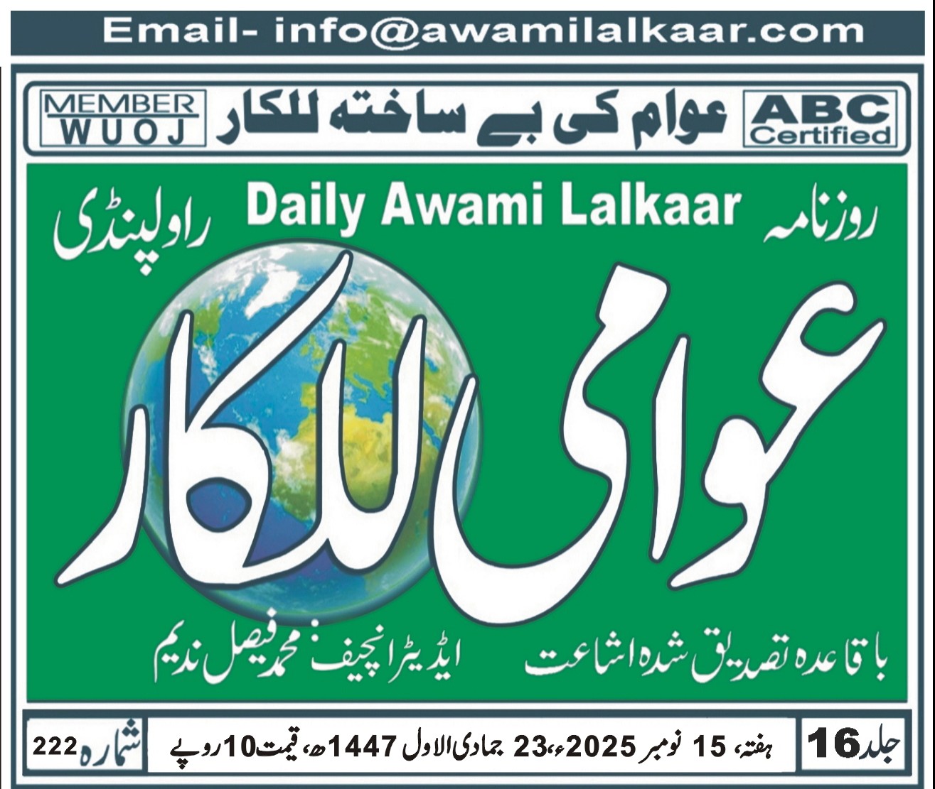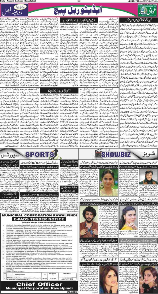 پی ڈی ایف ڈاؤن لوڈ کرنے کے لیے نیچے دیے گئے ڈاؤن لوڈ کے بٹن پر کلک کیجئے Awami Lalkaar 15-11-2025Download