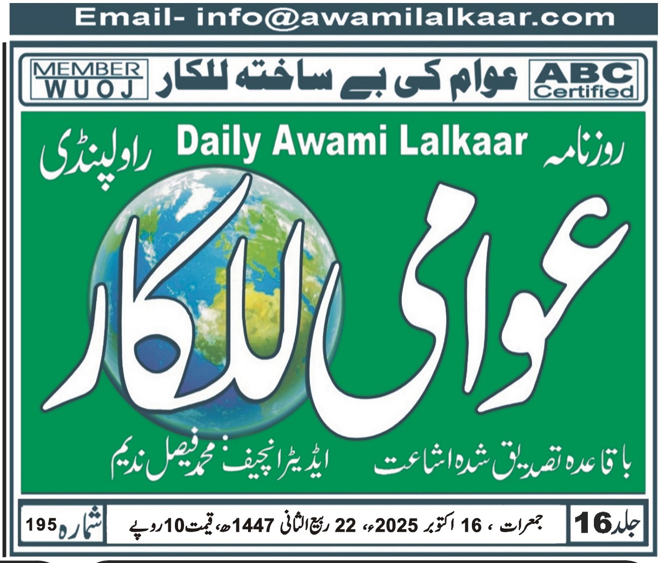عوامی للکار راولپنڈی بروز جمعرات 16 اکتوبر 2025