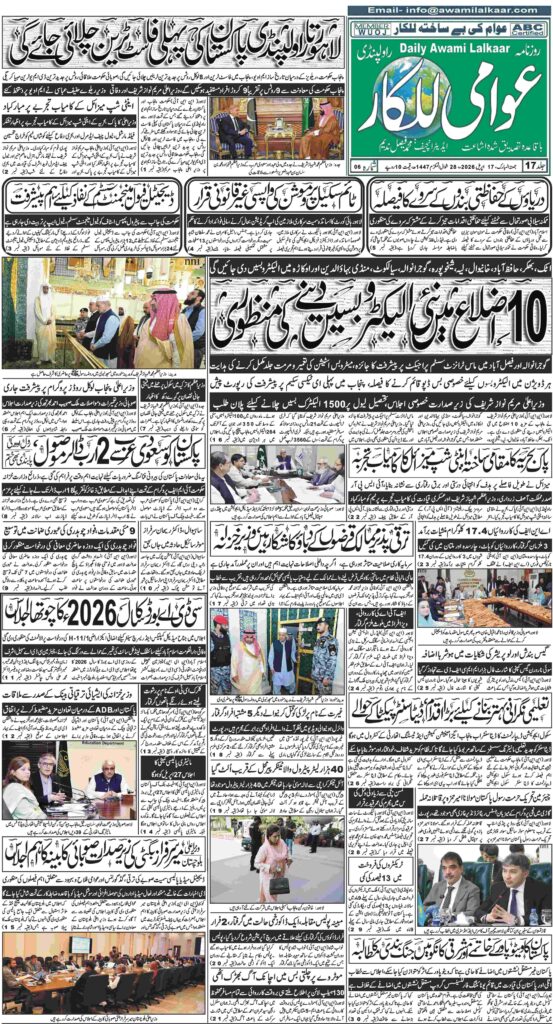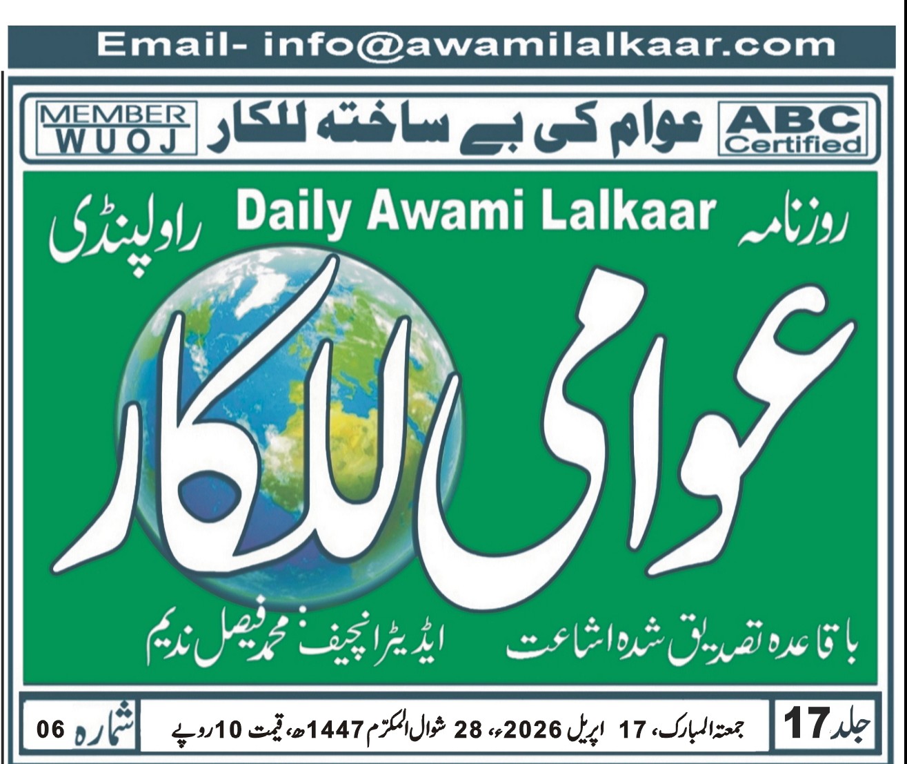 پی ڈی ایف ڈاؤن لوڈ کرنے کے لیے نیچے دیے گئے ڈاؤن لوڈ کے بٹن پر کلک کیجئے Awami Lalkaar 17-04-2026ڈاؤن لوڈ
