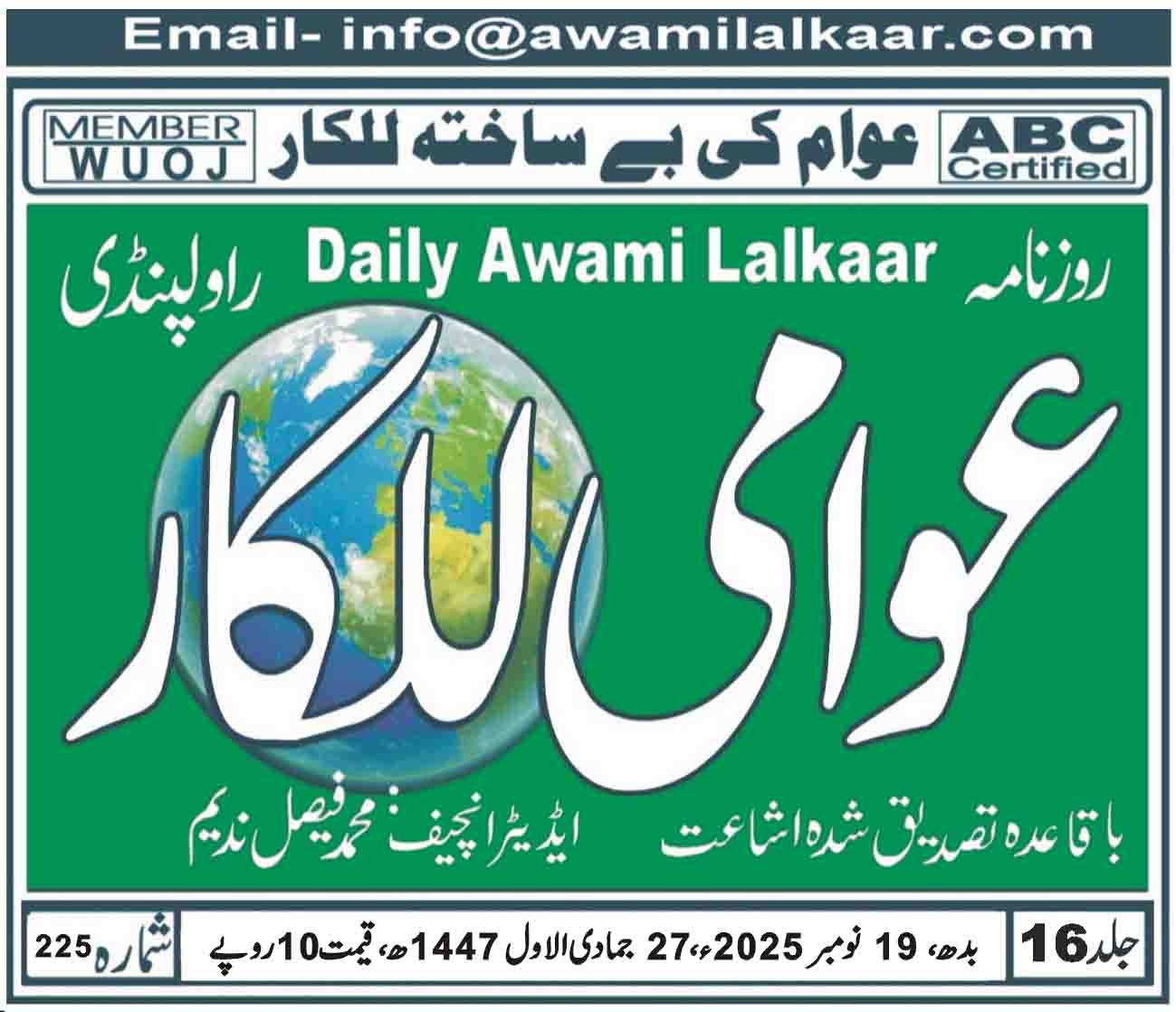 پی ڈی ایف ڈاؤن لوڈ کرنے کے لیے نیچے دیے گئے ڈاؤن لوڈ کے بٹن پر کلک کیجئے Awami Lalkaar 19-11-2025Download