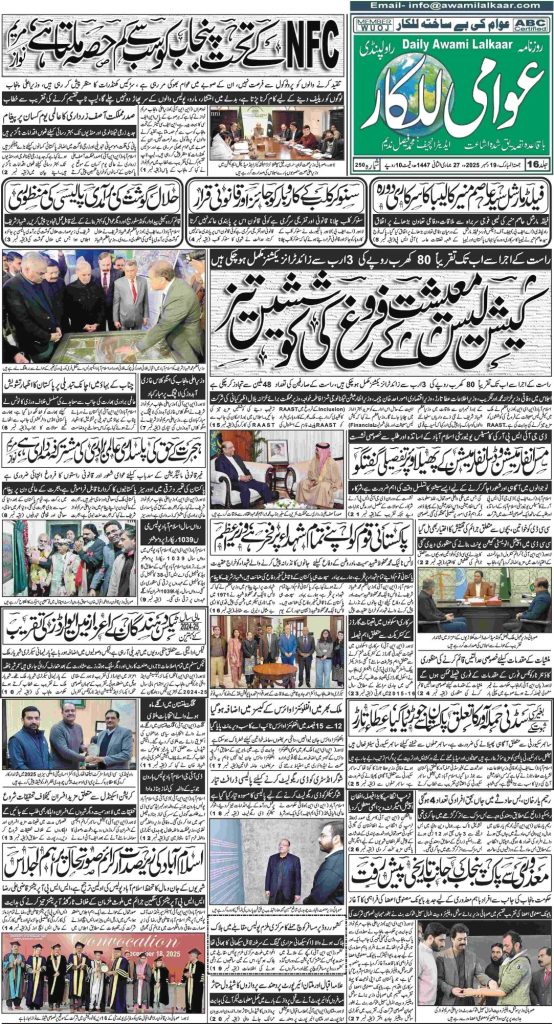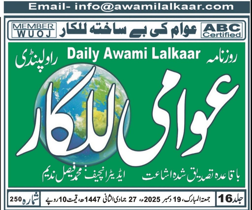 پی ڈی ایف ڈاؤن لوڈ کرنے کے لیے نیچے دیے گئے لنک پر کلک کیجیے۔ Awami Lalkaar 19-12-2025Download