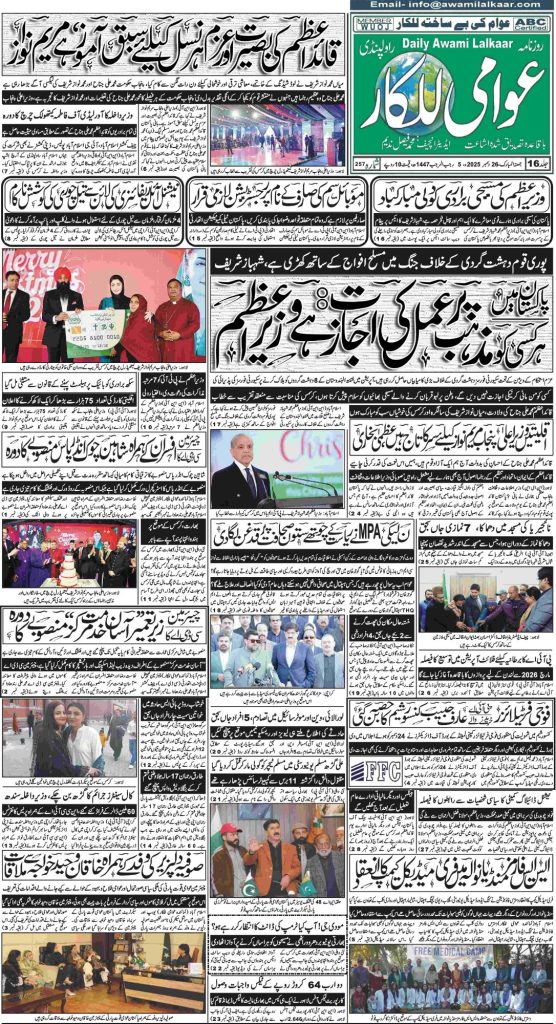 پی ڈی ایف ڈاؤن لوڈ کرنے کے لیے نیچے دیے گئے ڈاؤن لوڈ کے بٹن پر کلک کیجئے Awami Lalkaar 26-12-2025Download
