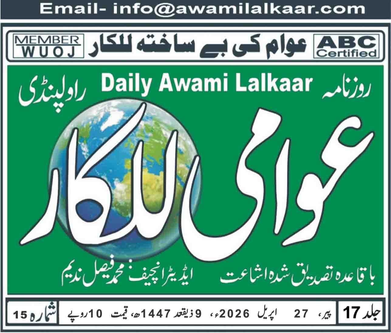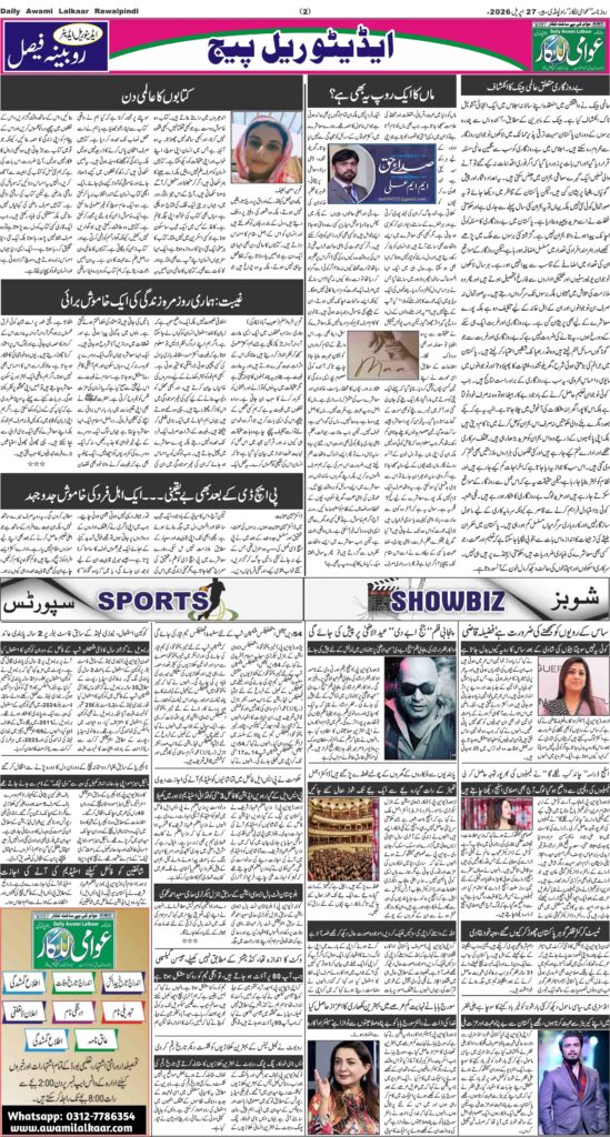 پی ڈی ایف ڈاوٗن لوڈ کرنے کے لیے نیچے دیے گئے لنک پر کلک کیجیے Awami Lalkaar 27-04-2026ڈاؤن لوڈ
