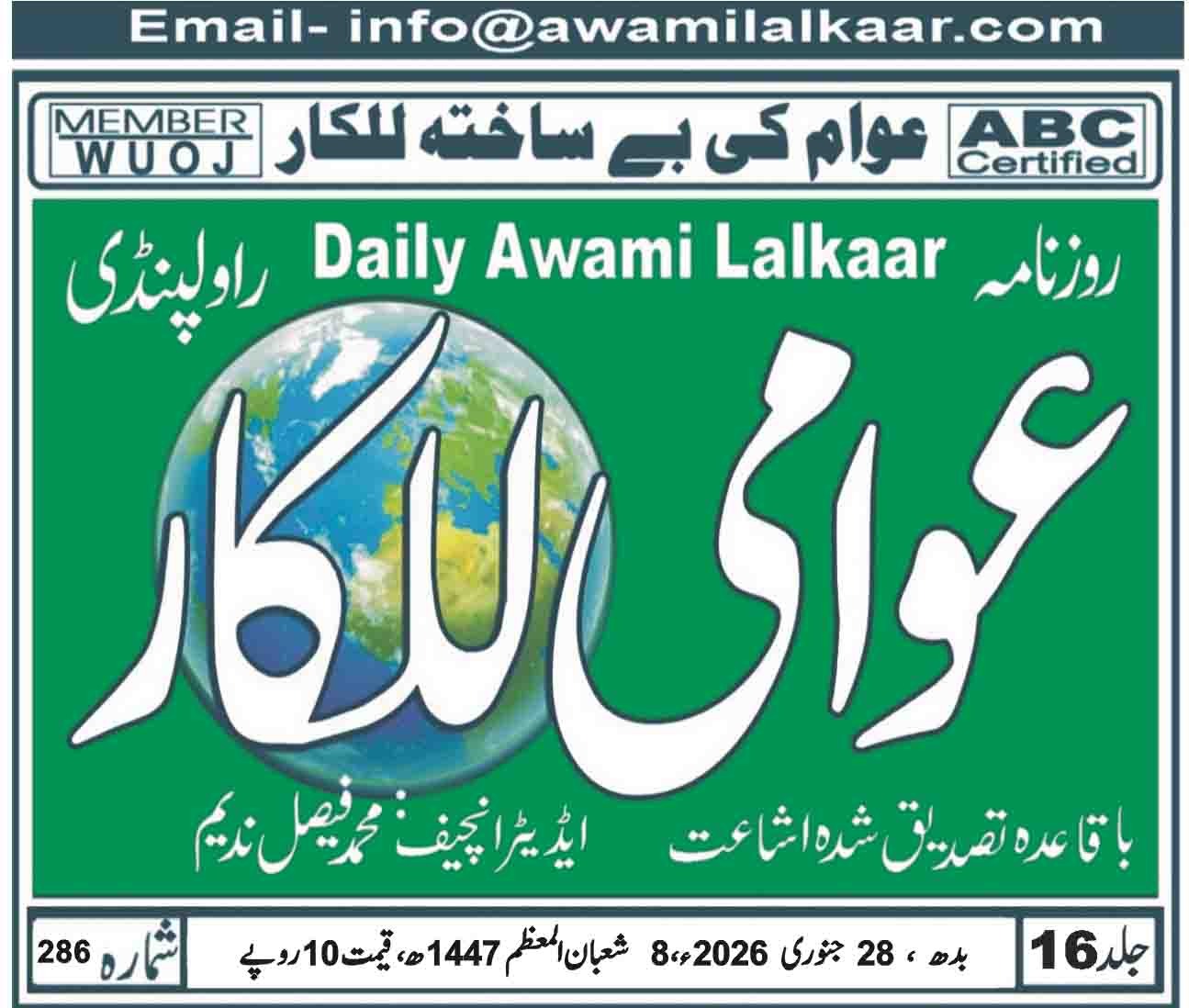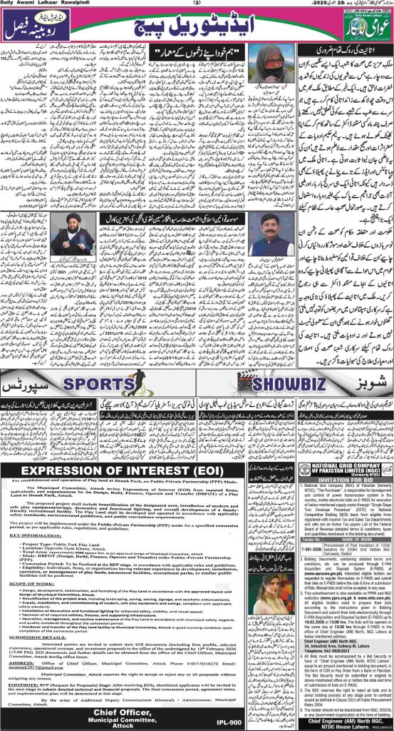 عوامی للکار راولپنڈی بروز بدھ 28 جنوری 2026