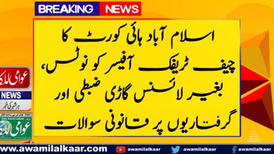 اسلام آباد ہائی کورٹ کا چیف ٹریفک آفیسر کو نوٹس