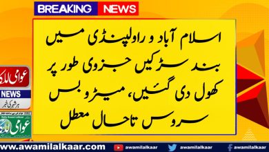 اسلام آباد و راولپنڈی میں بند سڑکیں جزوی طور پر کھول دی گئیں، میٹرو بس سروس تاحال معطل